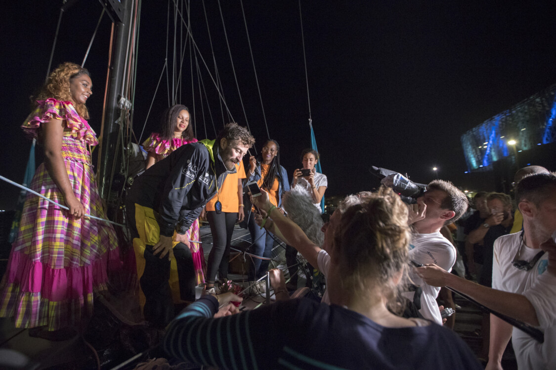 Phil Sharp at the helm of Imerys Clean Energy crosses the finish line in Guadeloupe in 3rd place, 1 hour and 45 minutes behind 2nd place. His time, 16 days, 13 hours, 1 minute, 50 seconds, averaging a speed of 11.30 kts over 4,487 miles sailed.